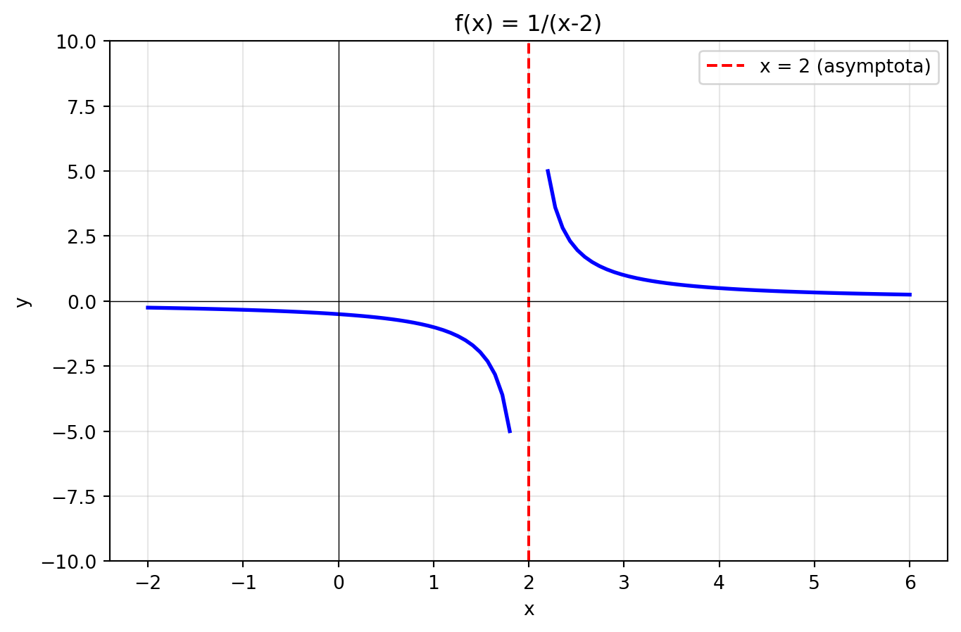 plt.axvline(x=2, color='red', linestyle='--', label='x = 2 (asymptota)')