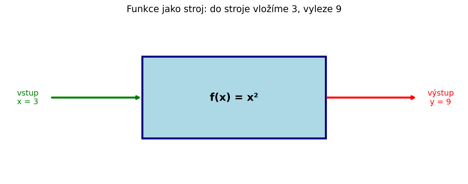 ax.set_title('Funkce jako stroj: do stroje vložíme 3, vyleze 9', fontsize=14)