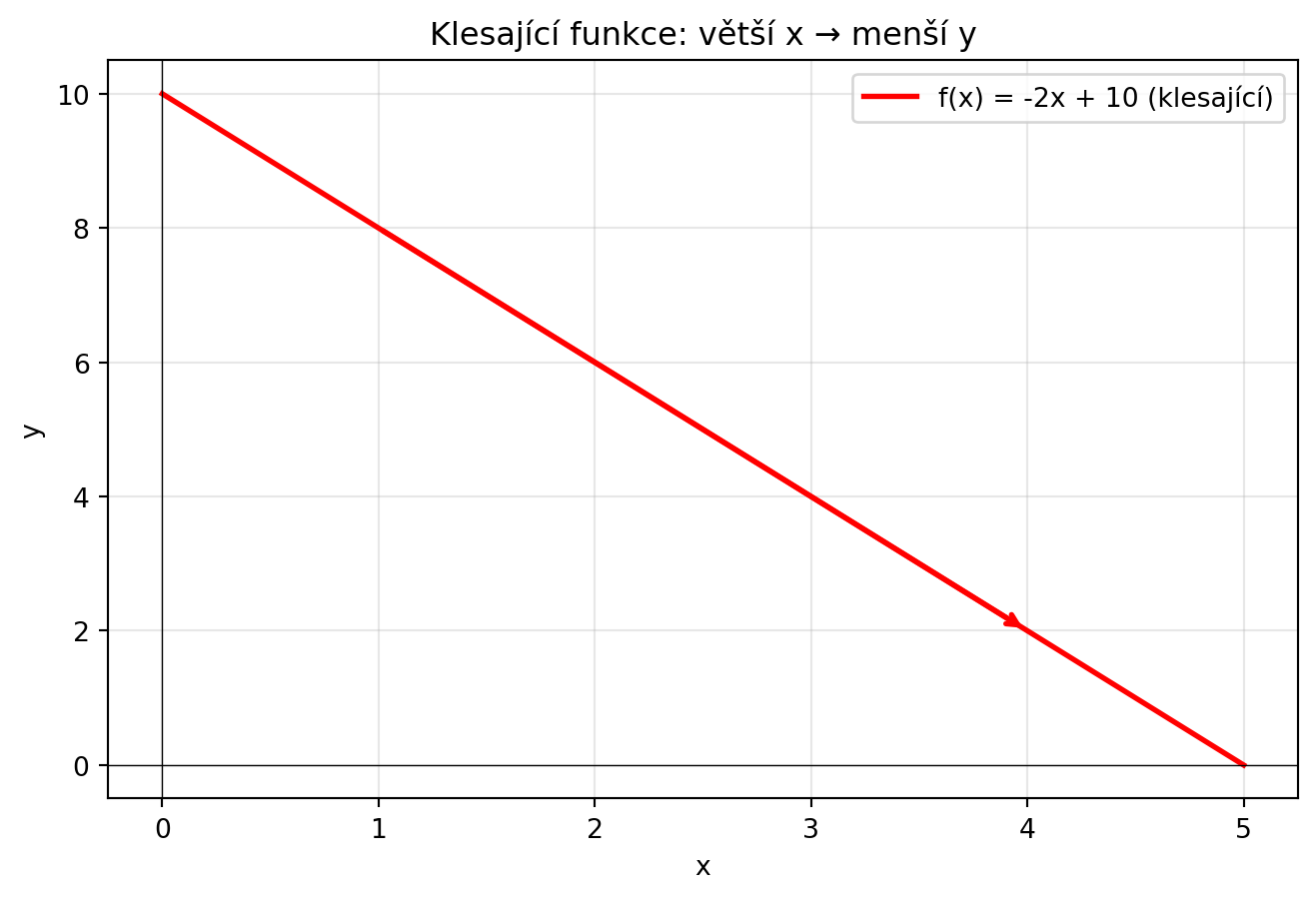 - Funkce je **klesající**, když větší x dává menší y