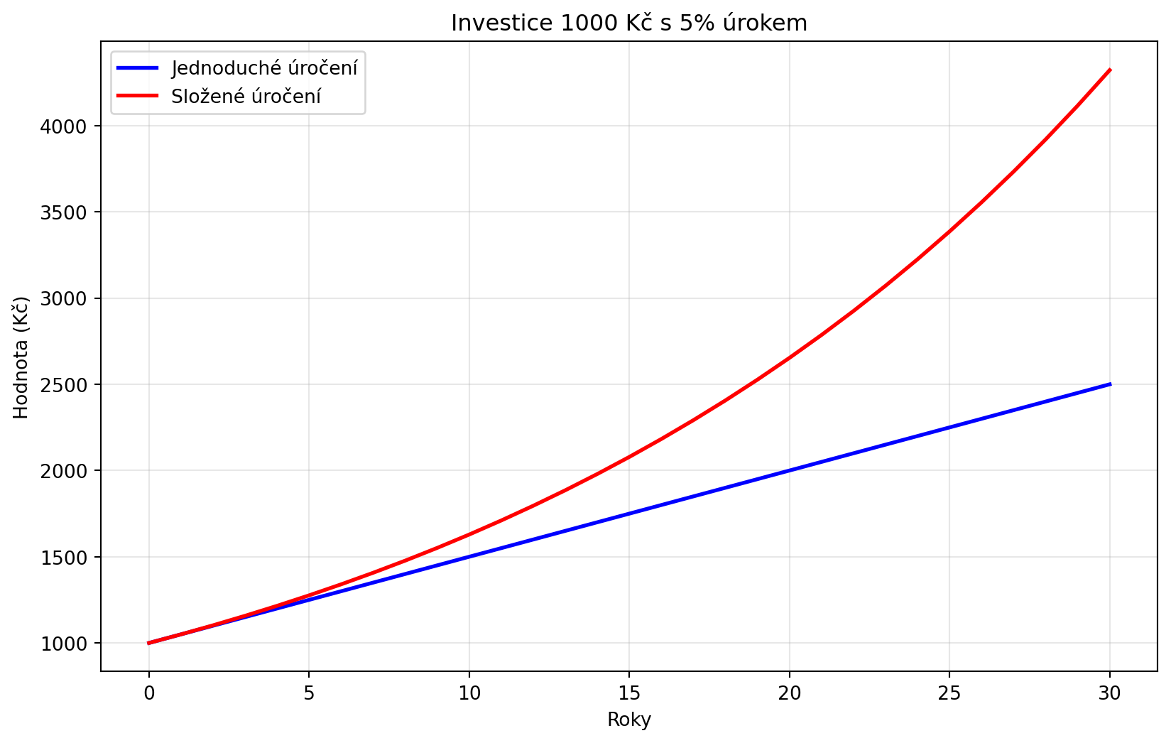 Investice 10 000 Kč roste o 8% ročně. Jaká bude hodnota za 5 let?