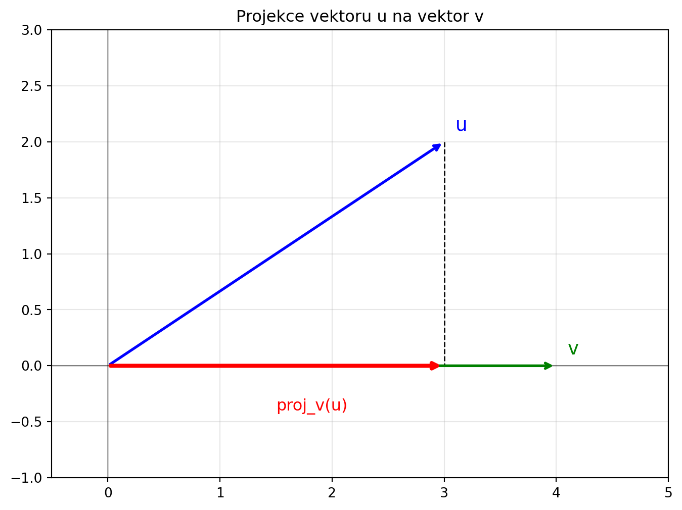 Projekce u na v = [3. 0.]