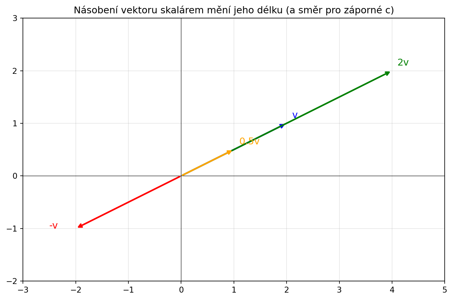 Vektor vynásobíme číslem (skalárem) tak, že vynásobíme každou složku: