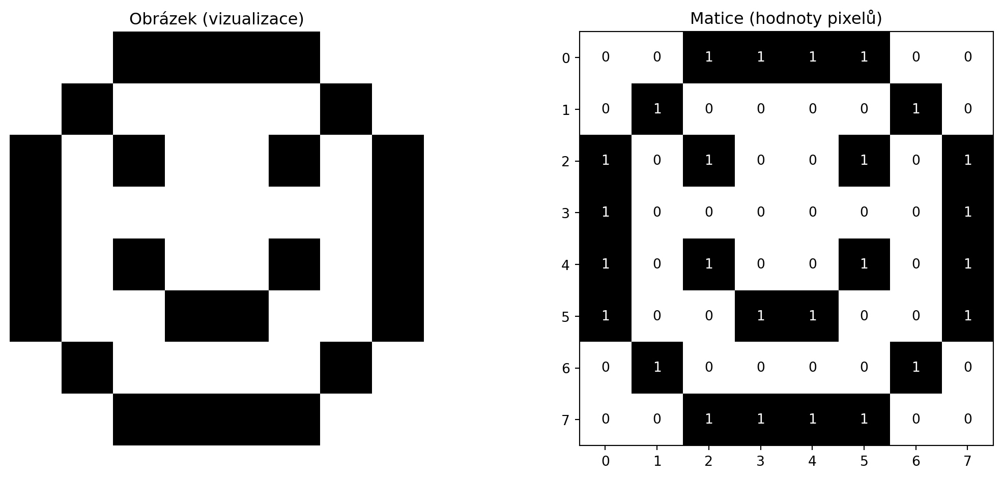 # Jednoduchý obrázek jako matice (8x8 pixelů)
