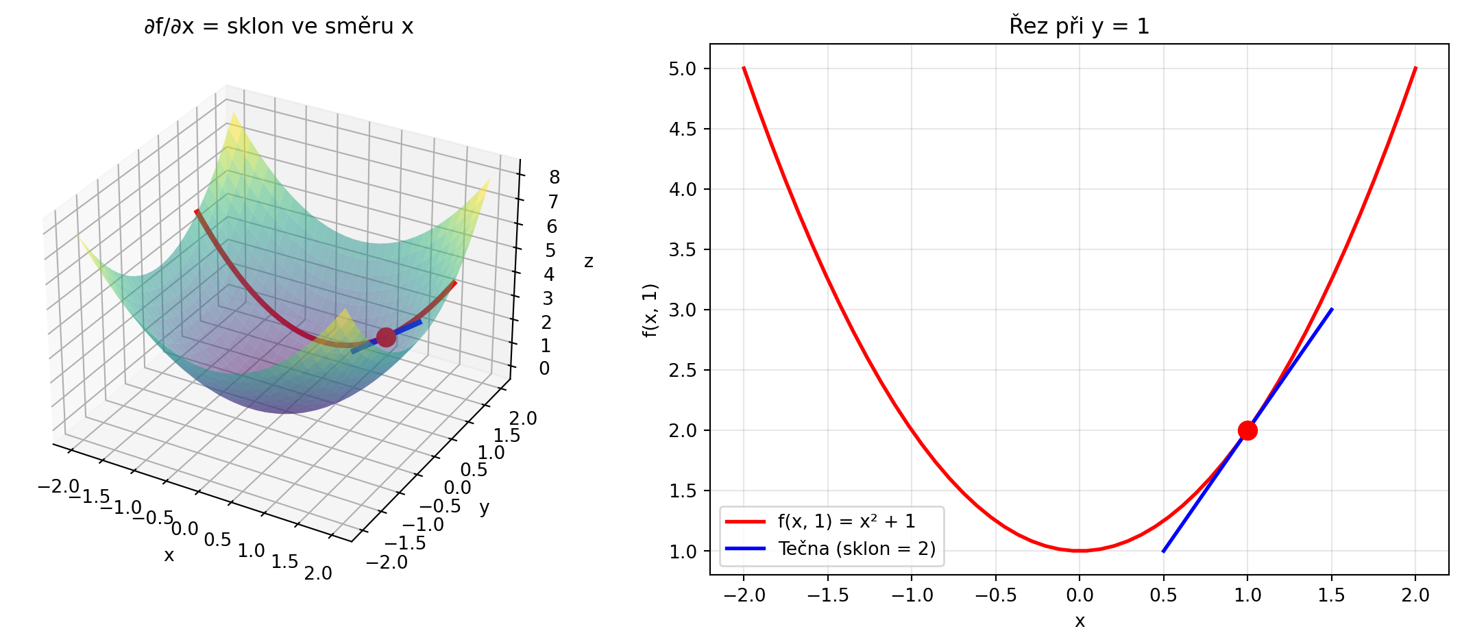 ax1.set_title('∂f/∂x = sklon ve směru x')