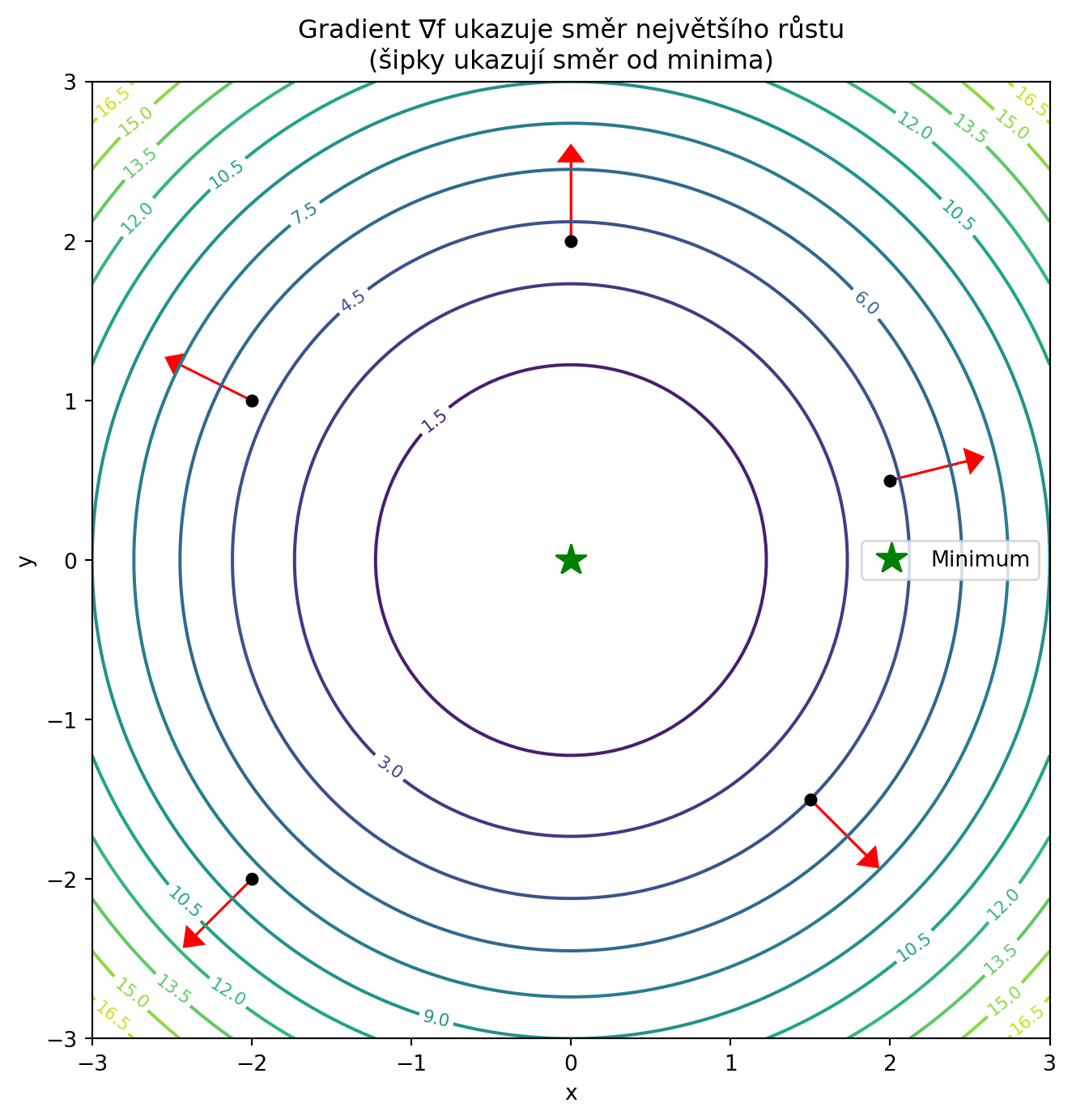 - Jak gradient ukazuje směr největšího růstu