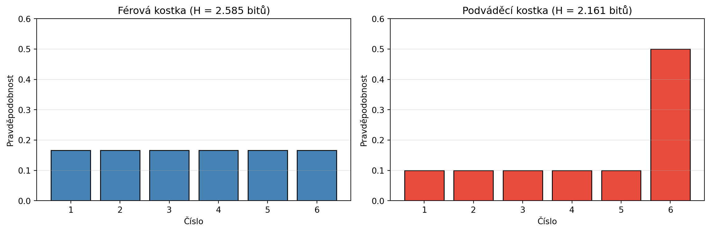 print(f"Neférová (90/10): H = {entropie(nefer_mince):.4f} bitů")