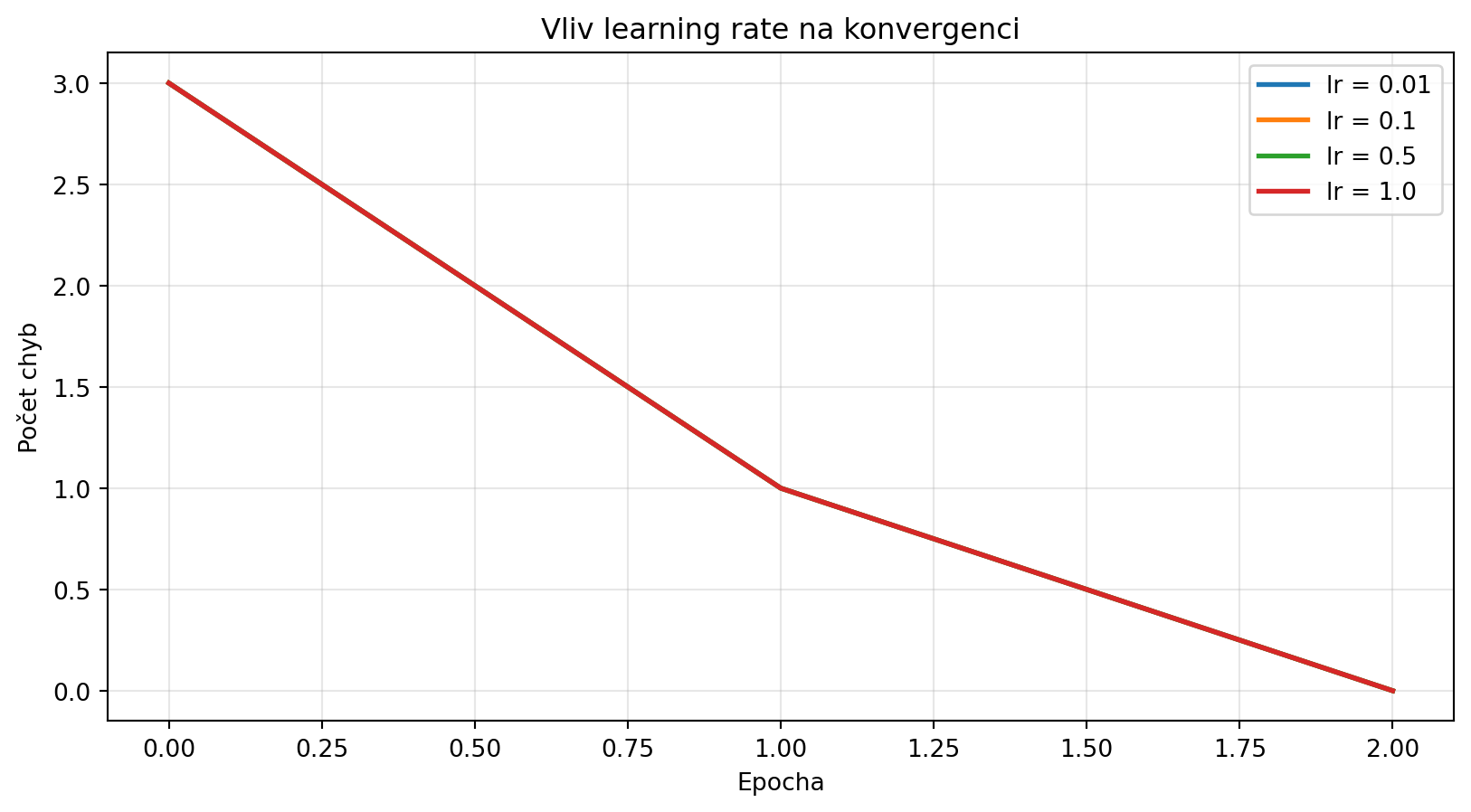 **Zadání**: Ukažte vliv learning rate na konvergenci perceptronu.