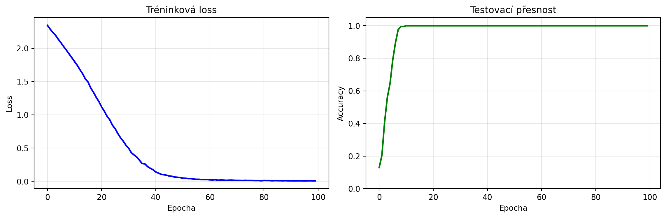 print(f"Finální přesnost na test datech: {test_accs[-1]:.2%}")