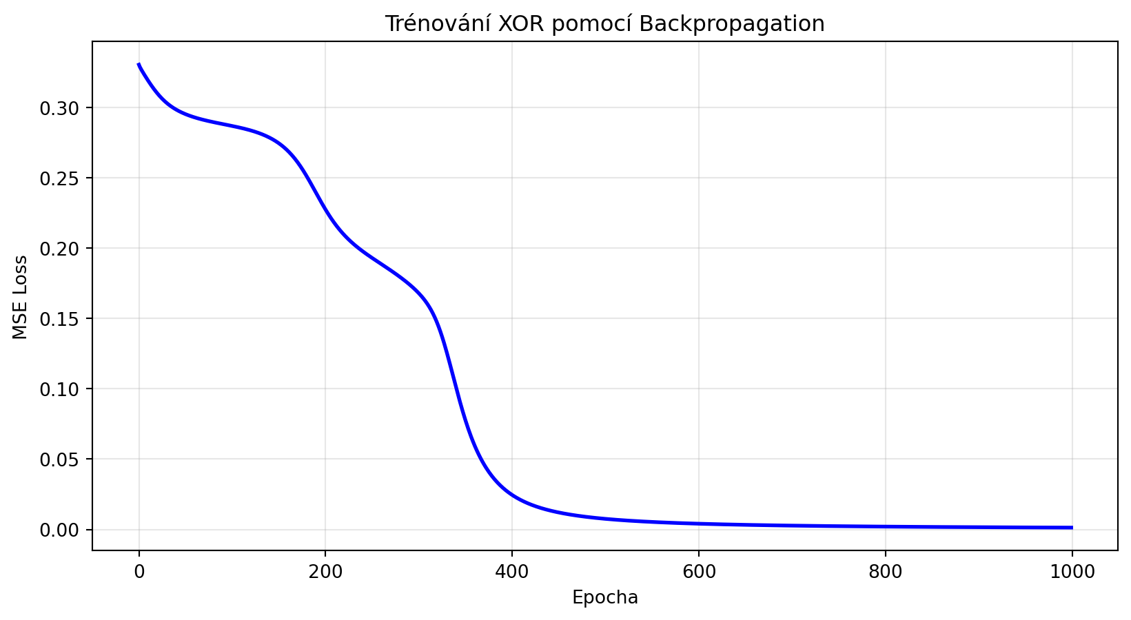 Řešením je **backpropagation** (zpětné šíření chyby) - elegantní algoritmus, který využívá **řetízkové pravidlo** k efektivnímu výpočtu všech gradientů v jednom průchodu sítí.